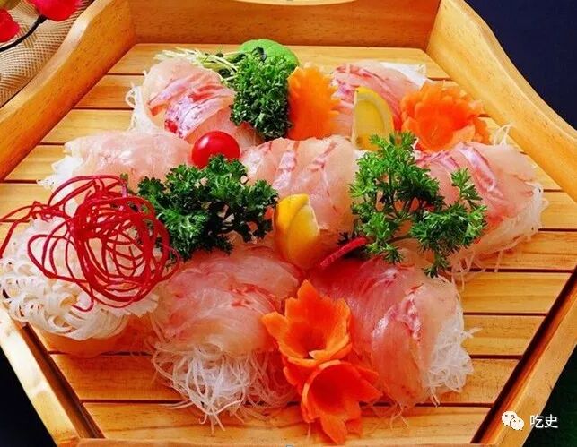 因为日本的生鱼片是海鱼,所以切的很厚,而唐朝时的生鱼片把鱼切的又细又薄,拿起来一看就像透明的,也喜欢把鱼切成丝状。