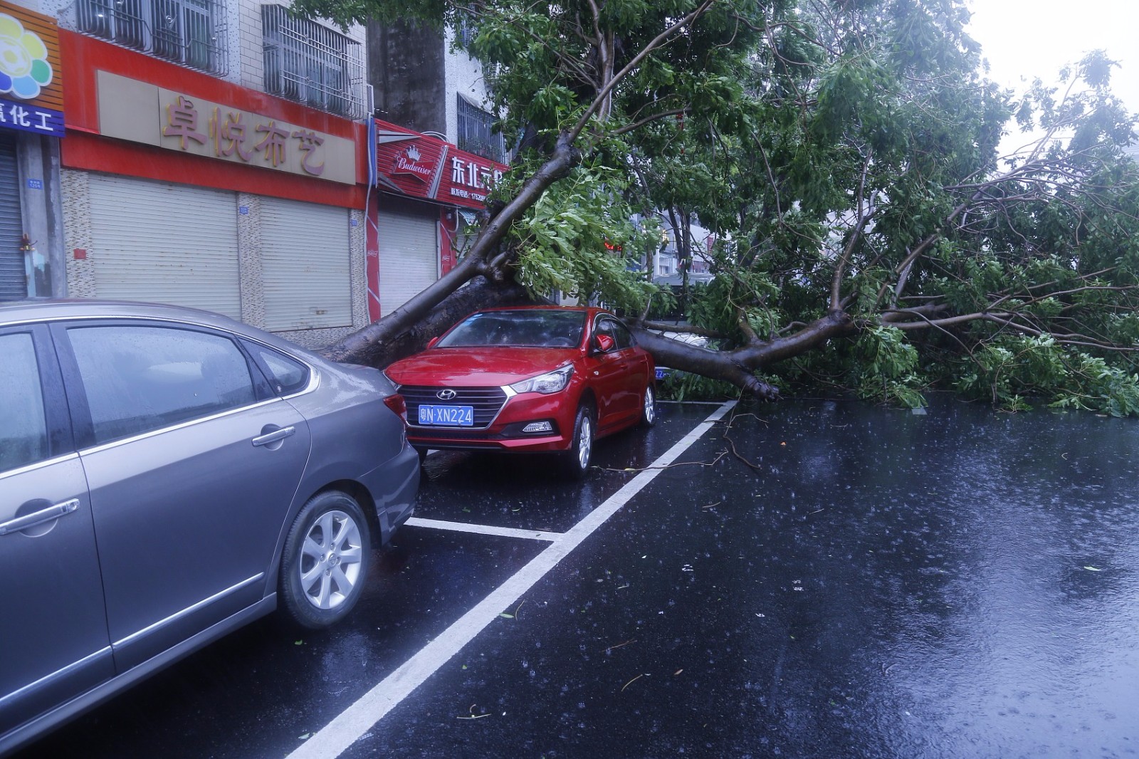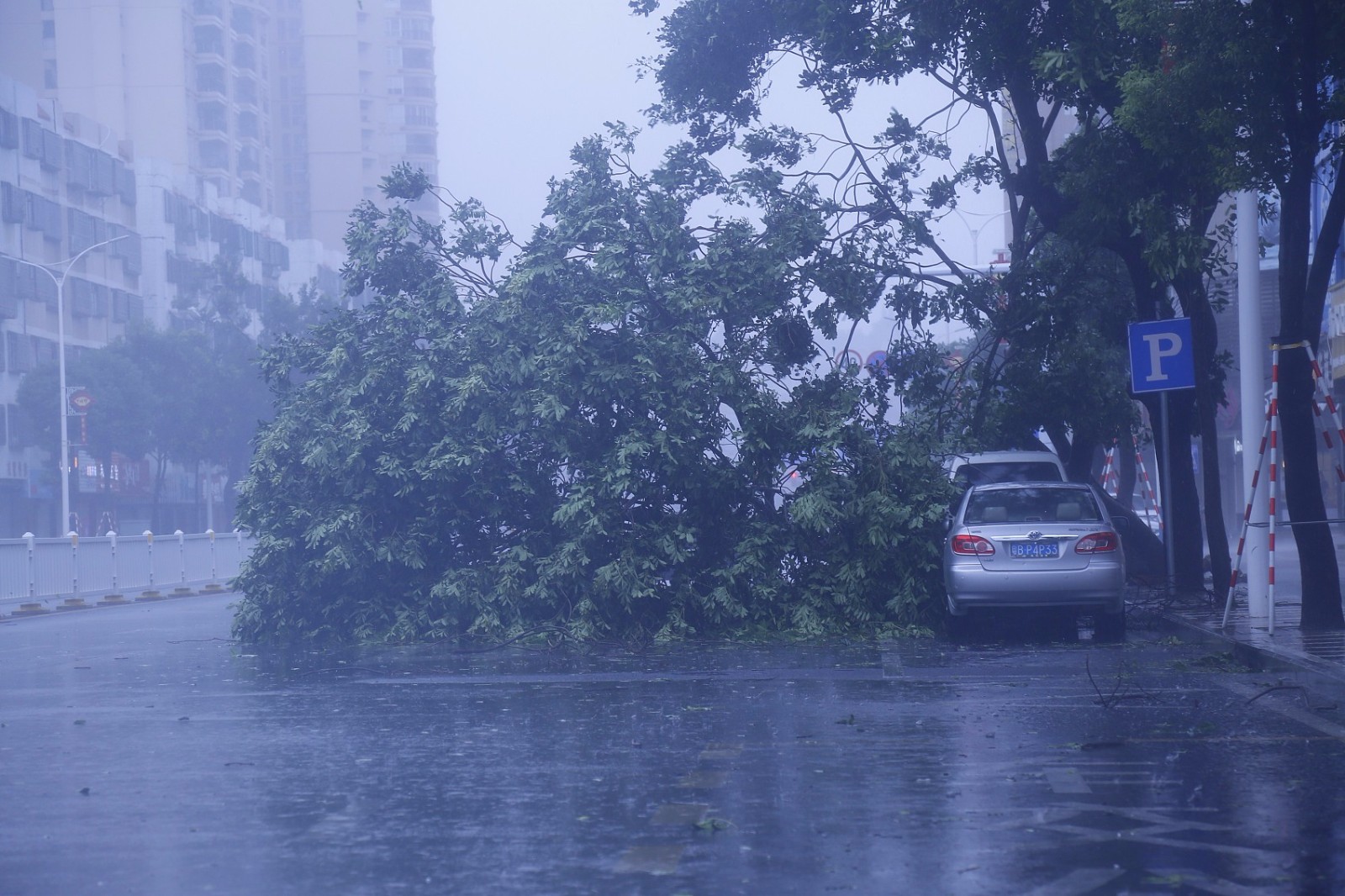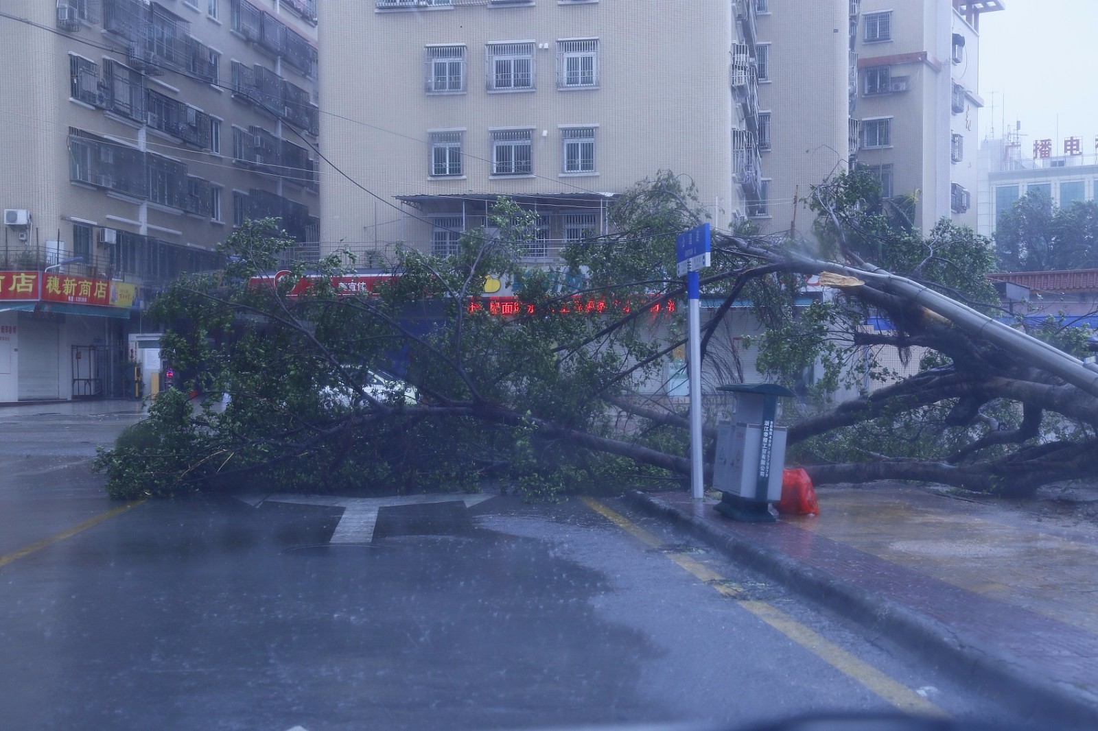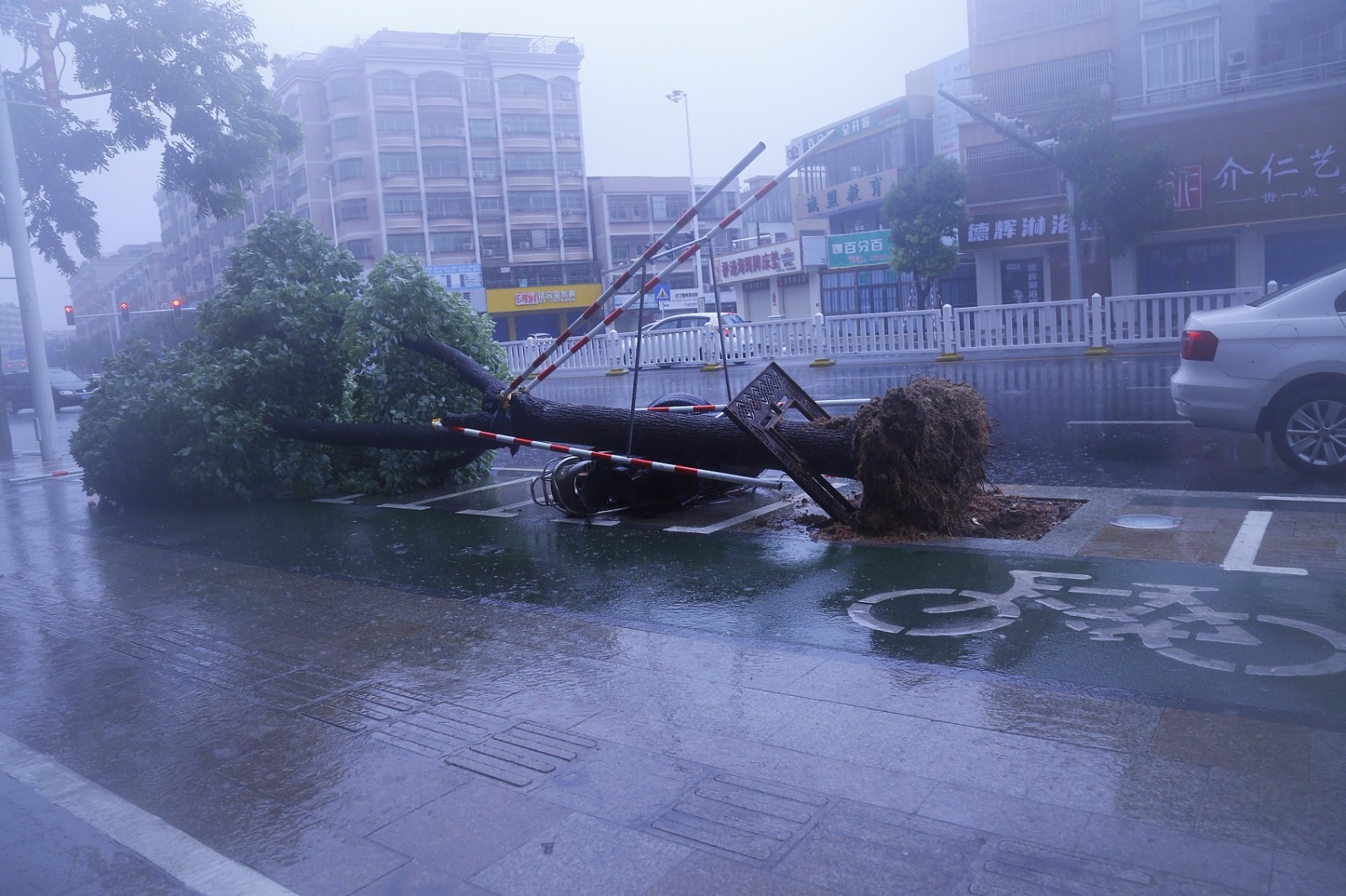 广东汕尾,台风“山竹”来袭,实拍街头景象。