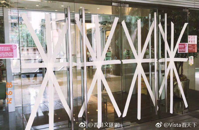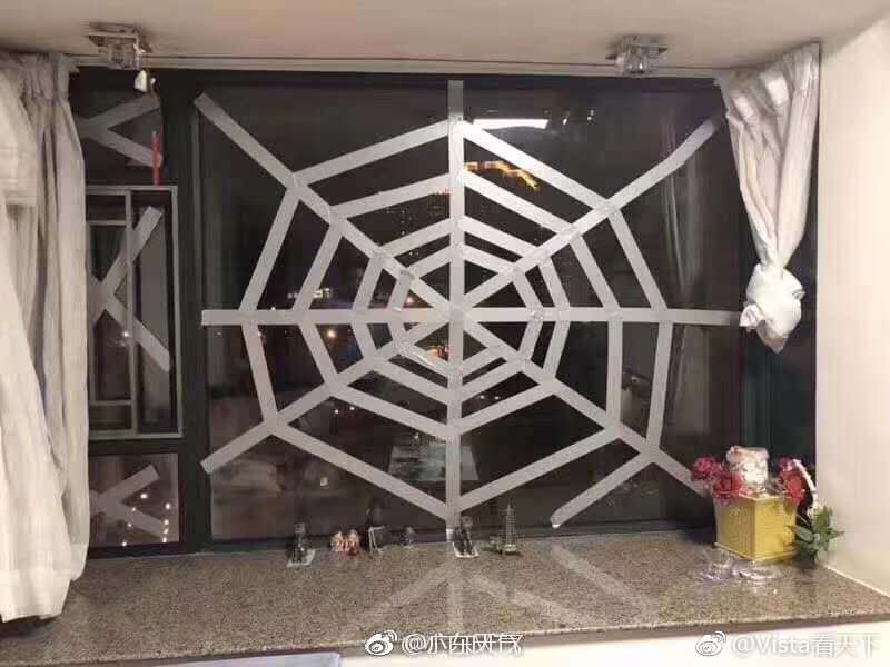 台风来袭期间,家里的玻璃窗贴上“米”字型胶带不但可以对抗较大的风压,也可防止玻璃破裂时四溅伤人,多少增加防护的效果。粤港两地人民"封印"台风山竹。