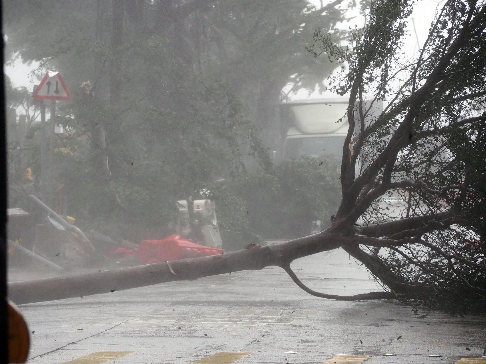 香港天文台于9时40分发布热带气旋最高警报—10号飓风信号,表示本港平均风速将每小时118公里以上。