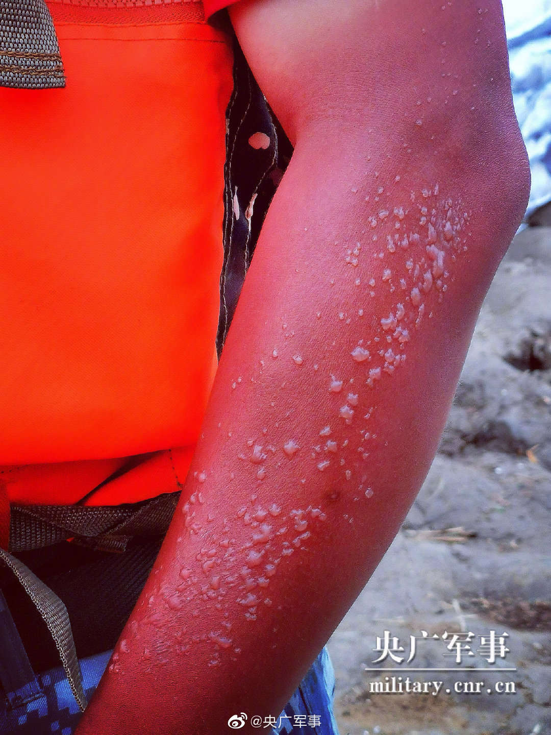 在湖北洪湖水域连续6天执行抗洪抢险任务后,空降兵部队官兵的胳膊上晒出水泡,留下“红与黑”的最美印记。感谢官兵们的守护,一起对他们说声辛苦了!