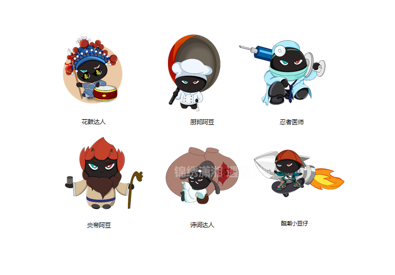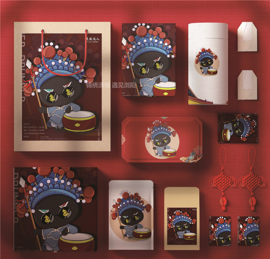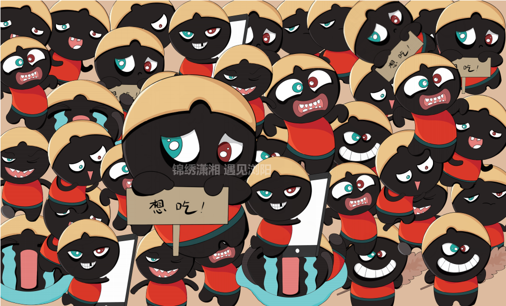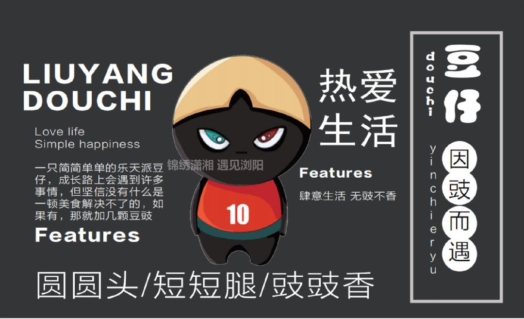 浏阳豆豉的发展历史悠久,为了更好的传承豆豉文化,设计通过IP形象设计豆豉生命力。经过多重工序制作出来的豆豉色泽呈黑褐色或酱红色,因此IP的主色调为黑褐色和红色,并取名为豆仔,蓝绿色代表着健康,活泼,红色代表着热情,阳光。形象性格开朗,活泼,乐于助人。同时设计延展出多个与豆豉特性及浏阳特色相结合的形象,如花鼓达人、厨神达人、豆仙人等,在让豆仔形象更加饱满的同时,也不断推广浏阳地方特色。