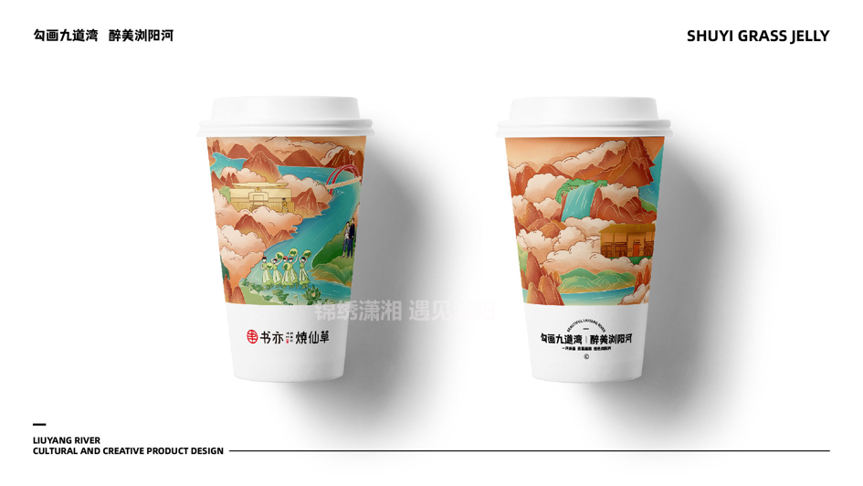 浏阳花炮,是浏阳市特产,中国国家地理标志产品;浏阳河,是浏阳人的母亲河,它看着一代代浏阳人慢慢长大;烧仙草,百年历史的特色小吃,与年轻人热爱的奶茶相结合,成为潮流。结合上述,本次创意包装以烟花和浏阳河为主视觉,以几个年轻人在浏阳河畔喝书亦、歌颂浏阳河为主要场景。把传统物质文化与现代青年文化结合输出,让这份情怀变得更有意义,更有记忆。