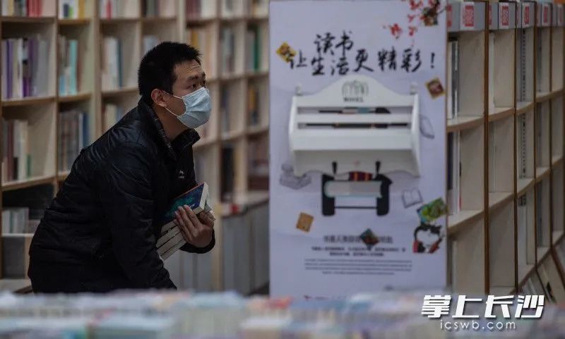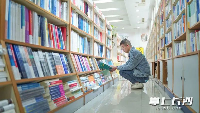 ↑在周边上班的徐先生,平时有空都会来袁家岭新华书店看书淘书。长沙晚报全媒体记者 刘晓敏 摄
