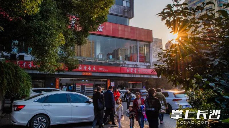 ↑12月10日,一束光洒在袁家岭新华书店门前,仿佛诉说着30多年来这里的点点滴滴。长沙晚报全媒体记者 邹麟 摄