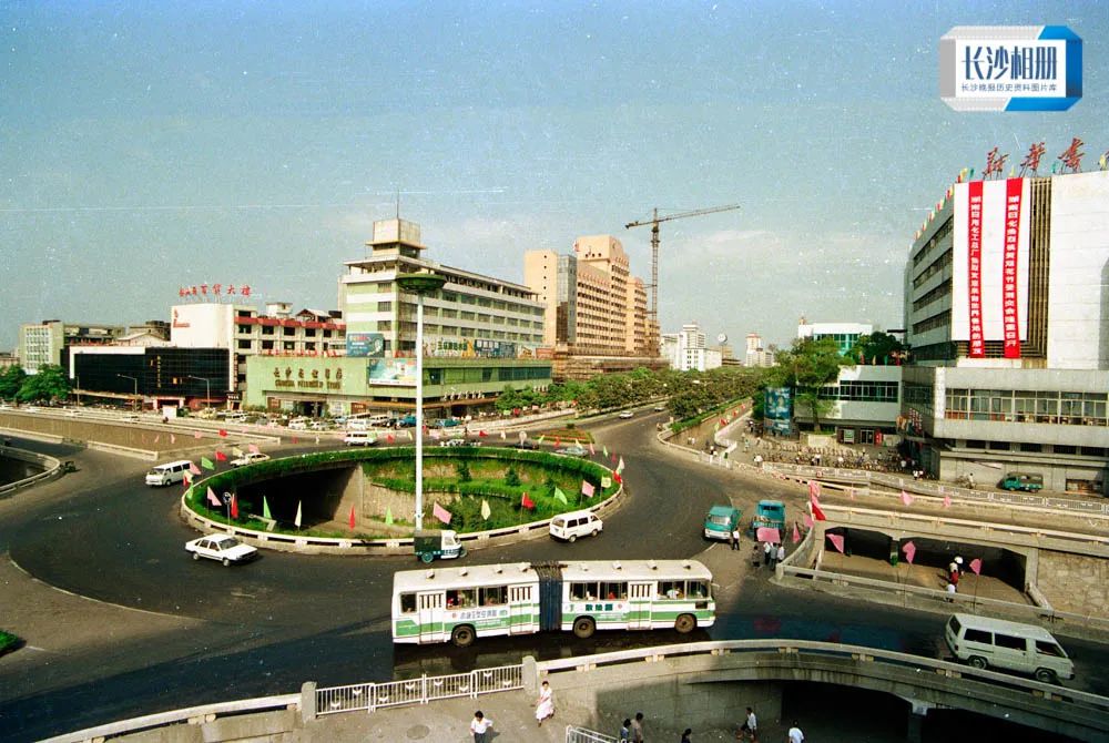 ↑为了改善五一路、韶山路交汇口交通状况,长沙1988年启动袁家岭立交桥建设,1989年建成通车。