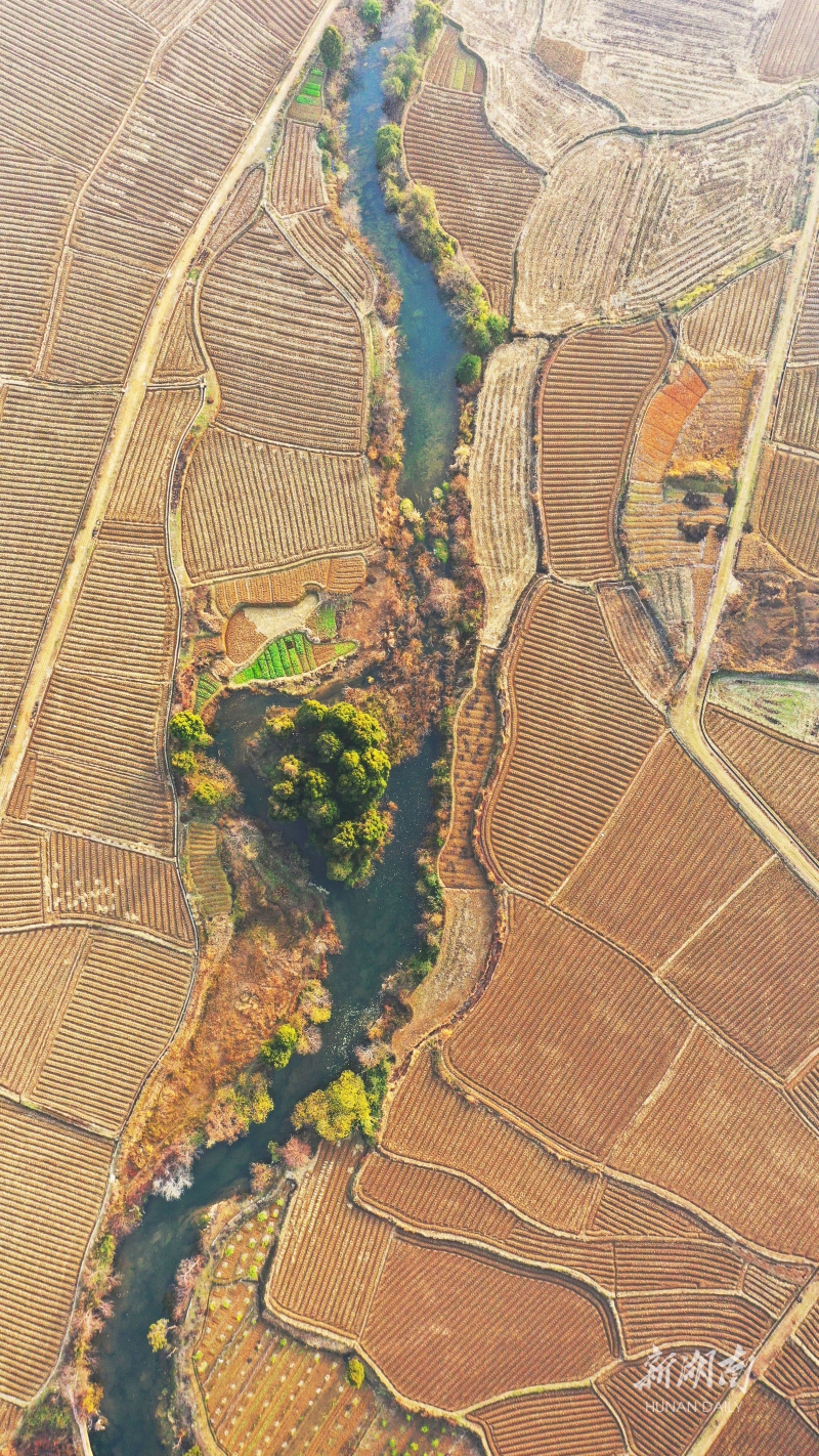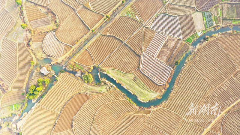 1月10日,新田县新圩镇山水塘村,翻耕后的田园阡陌纵横,犹如大地“指纹”。该县积极组织农民进行冬耕备耕,通过冬季深耕改良土壤结构和肥力,防治和减少病虫害发生,提高土地种植效益,增加农民收入。刘贵雄 摄(一审:马俊达 二审:王立三 三审:刘建光)