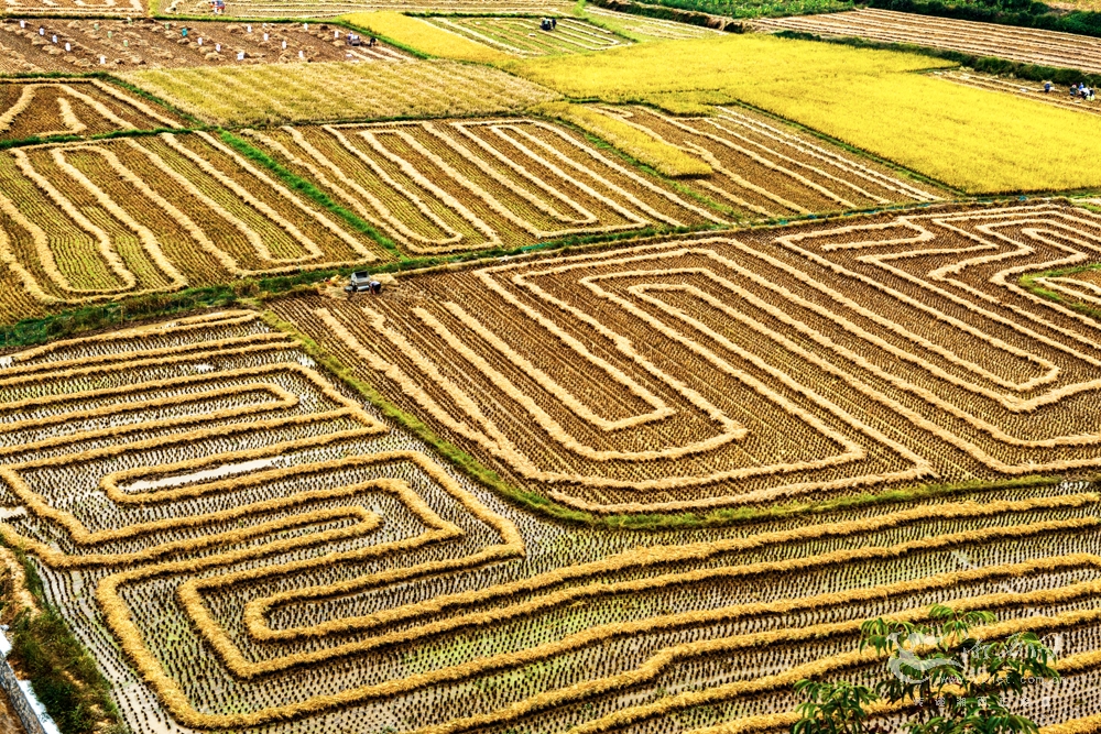 9月26日,永顺县松柏镇羊峰山蓸家湾稻田“晒龙谷”宛如迷宫,显示出独特的土家族农耕文化。“晒龙谷”是土家族独特的习俗之一,有着悠久的历史,旨在祈求风调雨顺、五谷丰登。