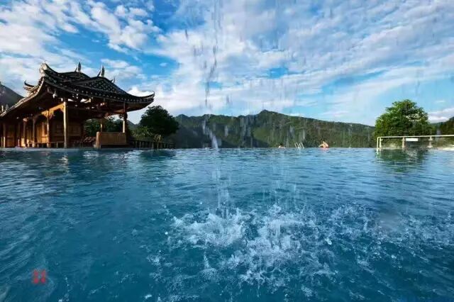 无边际游泳池是一个枫叶的造型池、加温池,是按照枫香瑶寨的“枫叶”为造型去打造的,在观赏性、视觉性上比较有吸引力。