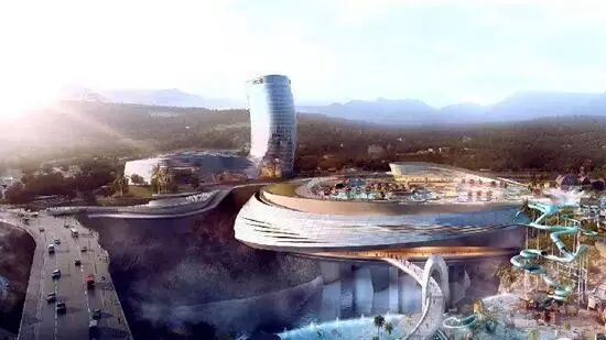 冰雪世界包括欢乐雪城和欢乐水寨两部分,前者建筑面积约8万平方米,室内雪乐园主功能区3万平方米,不同级别的雪道、滑轨沿深坑地势连接两座“阿尔卑斯小镇”。室外水乐园占地7万平方米,以热带岛国为主题,并依托深坑打造世界上落差最大的悬崖滑道。据称,项目预计将于2018年建成。