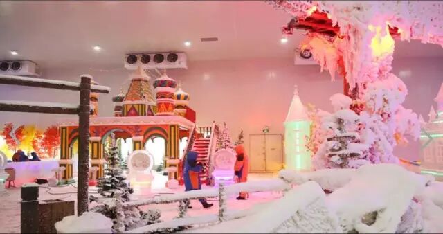 冰雪奇园有浪漫的北欧小镇带你感受身临其境般游览阿尔卑斯的冰雪风光;真雪造雪机带你感受爱斯基摩人的生活,夏天可以带着孩子在这里尽情打雪仗 、堆雪人,还有高耸旋转的冰雪滑道,让你体验高速下滑的刺激。