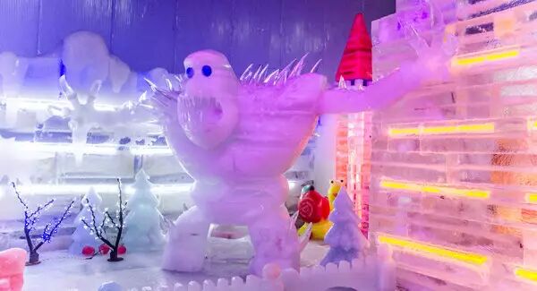 2000多平方米的冰雕展厅内,“中华五千年”“卡通形象”“冰上游戏“和“冰酒吧”四大主题将历史典故、文化理念融于其中,儿童趣味滑梯、冰上电动车、迷宫、冰壶和冰爬犁等多种冰上游戏也能让孩子们玩个过瘾。
