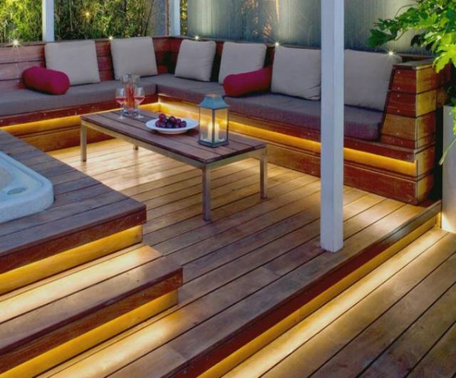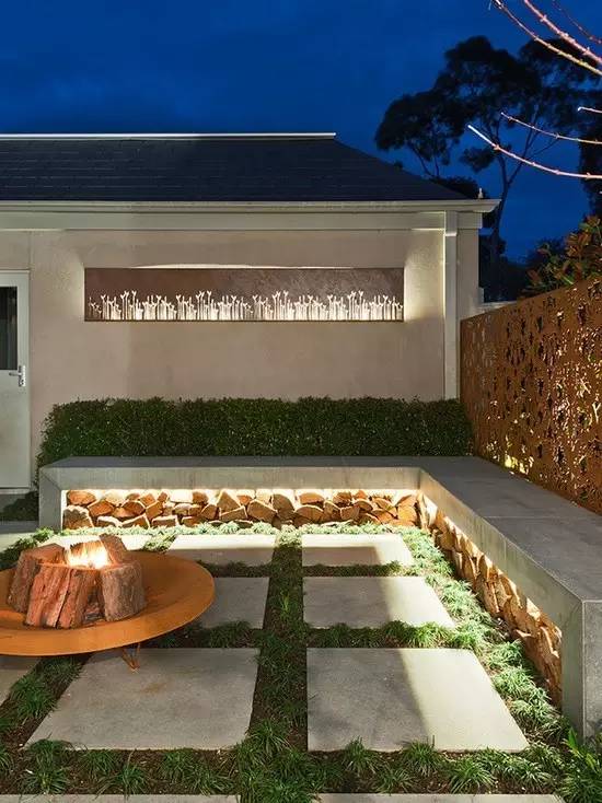 选择暖色调的光源,可以让整个院子显得格外的温馨。