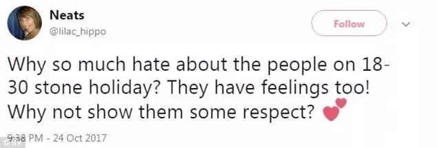 最近,英国独立电台ITV播出了一部名叫The 18-30 Stone Holiday的特别的旅行纪录片..