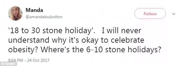 “200斤的假期?我不理解为啥人们会因为肥胖而感到自豪和高兴..我们100斤的假期在哪??”