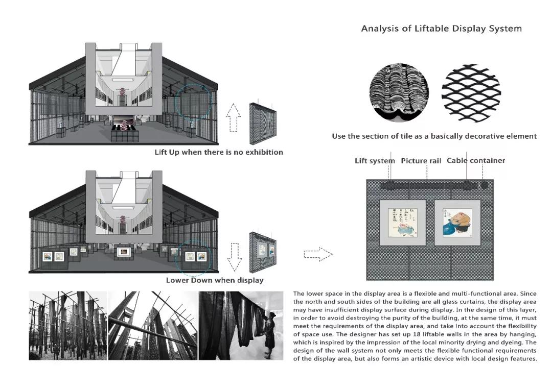 安勇介绍,其室内设计的创意来源于当地晾晒扎染(土布)的印象,通过伸缩与位移的展墙可使空间产生不同的变化与趣味,满足多功能全方位的艺术展演需求之余,可让人充分领略设计的本土化与室内外的关联度。