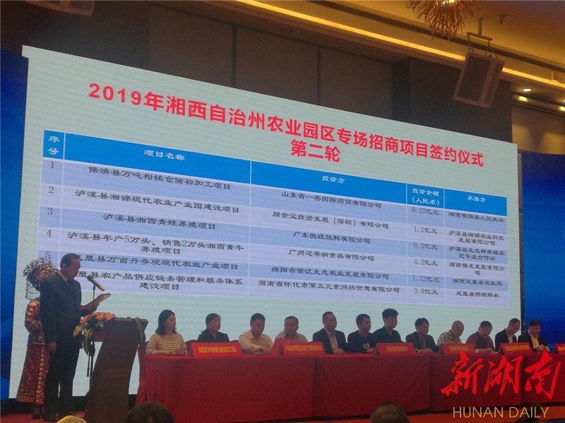 新湖南客户端4月17日讯(通讯员 向民贵 谢申旺 陈坤 符皓)4月16日,湘西土家族苗族自治州在深圳市举办“对接粤港澳大湾区 承接产业大转移”农业园区专场招商推介会暨项目签约仪式。泸溪县达成招商引资项目3个,签约资金1.78亿元。