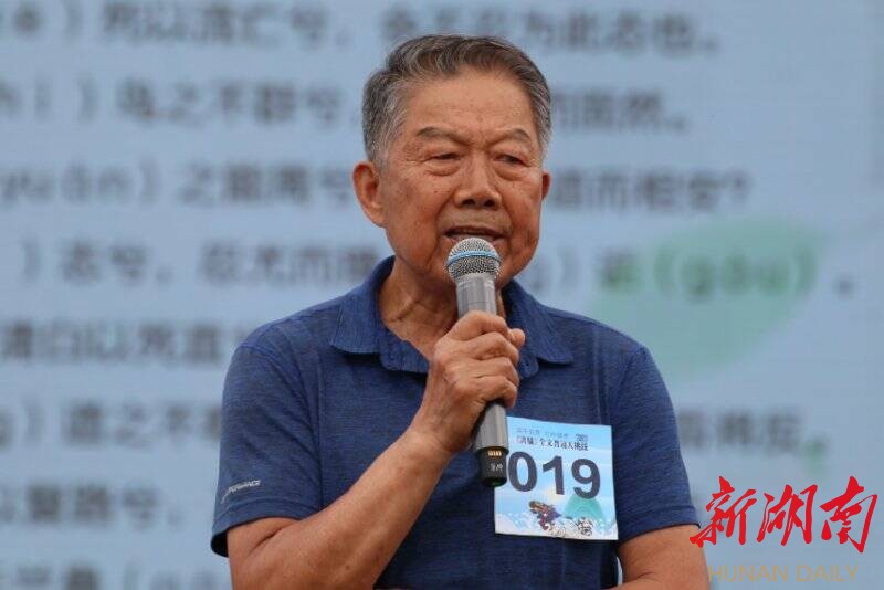 “人老了记忆力会衰减,为了衰减得缓慢一点,我选择了背诵一些诗文。”顾仁静说,他多年来养成了坚持背诵诗文的习惯,听说端午节汨罗市举办《离骚》全文背诵大赛,就带着家人一起过来“凑凑热闹”。