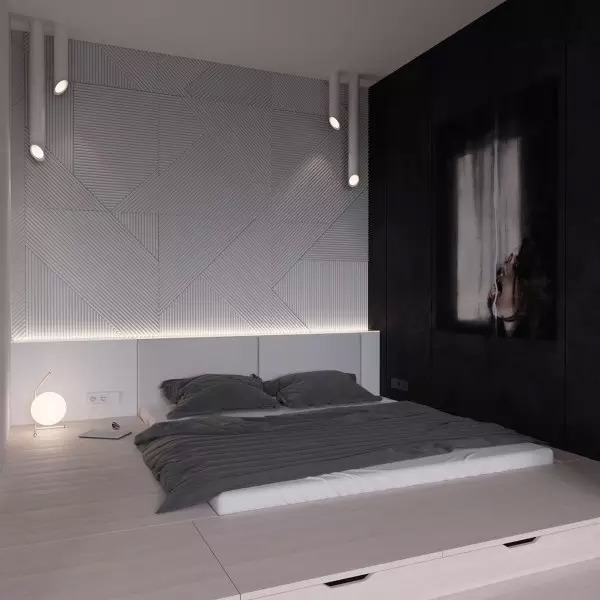而造型独特的“混搭墙面”,也可以借由软包、木饰面、灯光、涂料之间的相互碰撞,让卧室在千篇一律的纯色基调中脱颖而出,凸显更高颜值和情调。