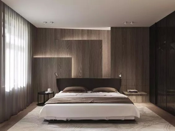 它的性质相当于整体定制的,包括房门、衣柜、床、地板、窗帘等在内的一切元素,都要遵循统一原则,与整体格调和谐相融。