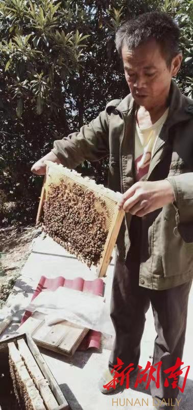 为了早日脱贫致富,2013年,何茂仁开始自学养蜂技术,遇到一些难题还跑到宜章县请教养蜂老师傅。学习过程中,被蜂蛰是经常的事。