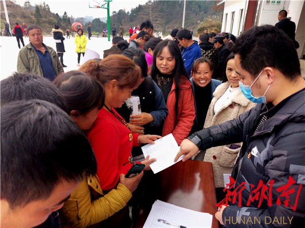 新湖南客户端2月24日讯(通讯员 彭经德 石雪源)“全体村民请注意!大家的工作有着落了。明天中午,我市人社局与长沙市人社局合作,特邀长沙市比亚迪、蓝思科技等著名企业在村里设置现场招聘点,请大家相互转达、抓住机会啊……”2月19日中午,湘西土家族苗族自治州吉首市马颈坳镇补戈村的“村村响”大喇叭里,传出了第一书记彭毅的劳务宣传“塑料”普通话。