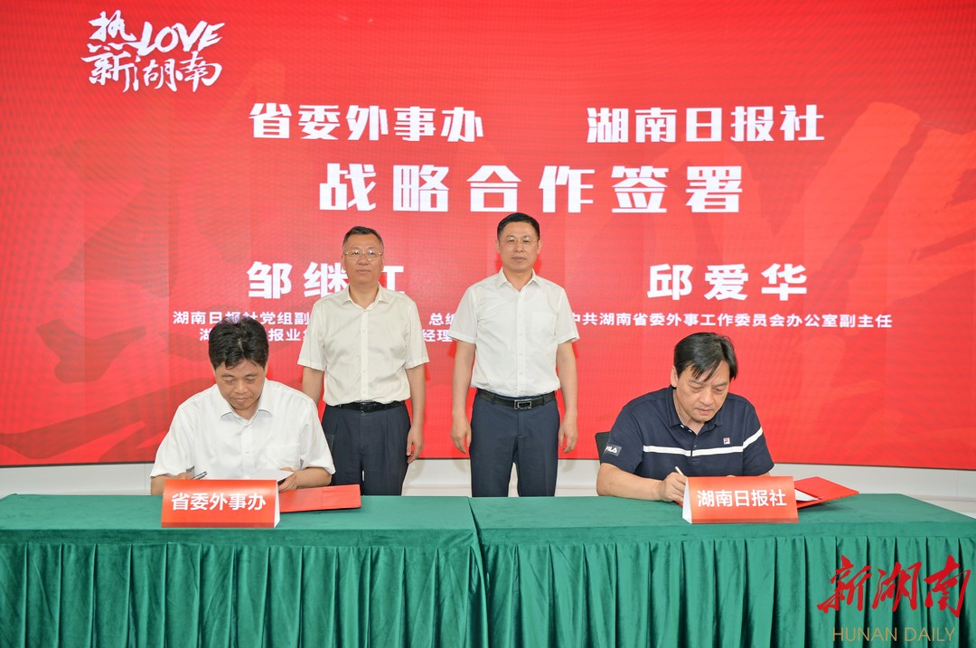 (省委外事办与湖南日报社签署战略合作协议。湖南日报·新湖南客户端记者 赵持 李健 摄)