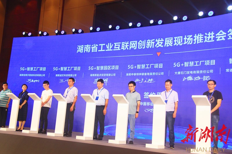 会上,省工信厅为山河智能装备股份有限公司、常德中车新能源汽车有限公司等10家省级“5G+工业互联网”示范工厂授牌。迪文科技、洞庭药业等22家常德企业与移动、电信、联通、华为、金蝶软件等平台服务商签约合作。飞沃新能源、南方新材、湘佳牧业现场连线,分享工业互联网建设经验。