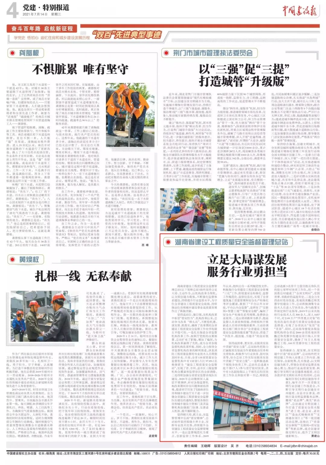 湖南省建设工程质量安全监督管理总站(以下简称总站)始终坚持立足大局、主动作为,以机构改革为契机,以文明创建为载体,不断强化监督体系建设,持续提升行业监管水平,为守住全省建设工程质量安全底线、持续推动住房和城乡建设事业高质量发展作出了积极贡献。