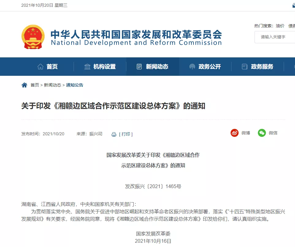 今天上午,国家发改委召开10月份新闻发布会,会上发布了《湘赣边区域合作示范区建设总体方案》(以下简称《总体方案》)。这标志着由湖南省、江西省共同推动,浏阳全力参与建设的湘赣边区域合作示范区正式升级为“国家战略”。湘赣边区域面临新的发展机遇,迎来了更大的利好。