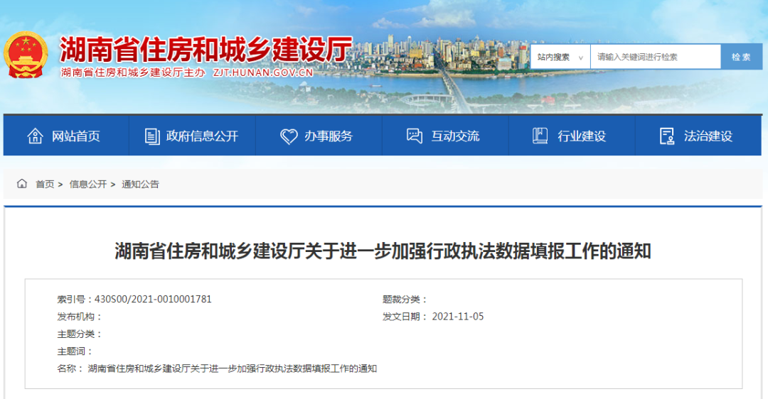 建立住建领域行政执法数据统计和分析制度,是进一步加强湖南省住建领域行政执法监督,规范行政执法行为的重要措施,也是法治政府建设的重要内容。省厅将利用住建领域统计信息平台及时收集各地行政执法数据,准确了解和掌握各地行政执法工作情况,科学分析住建领域行政执法存在的问题,加强工作指导。各地要把行政执法数据填报作为行政执法常态化工作,主动公开和填报相关数据,接受执法监督。