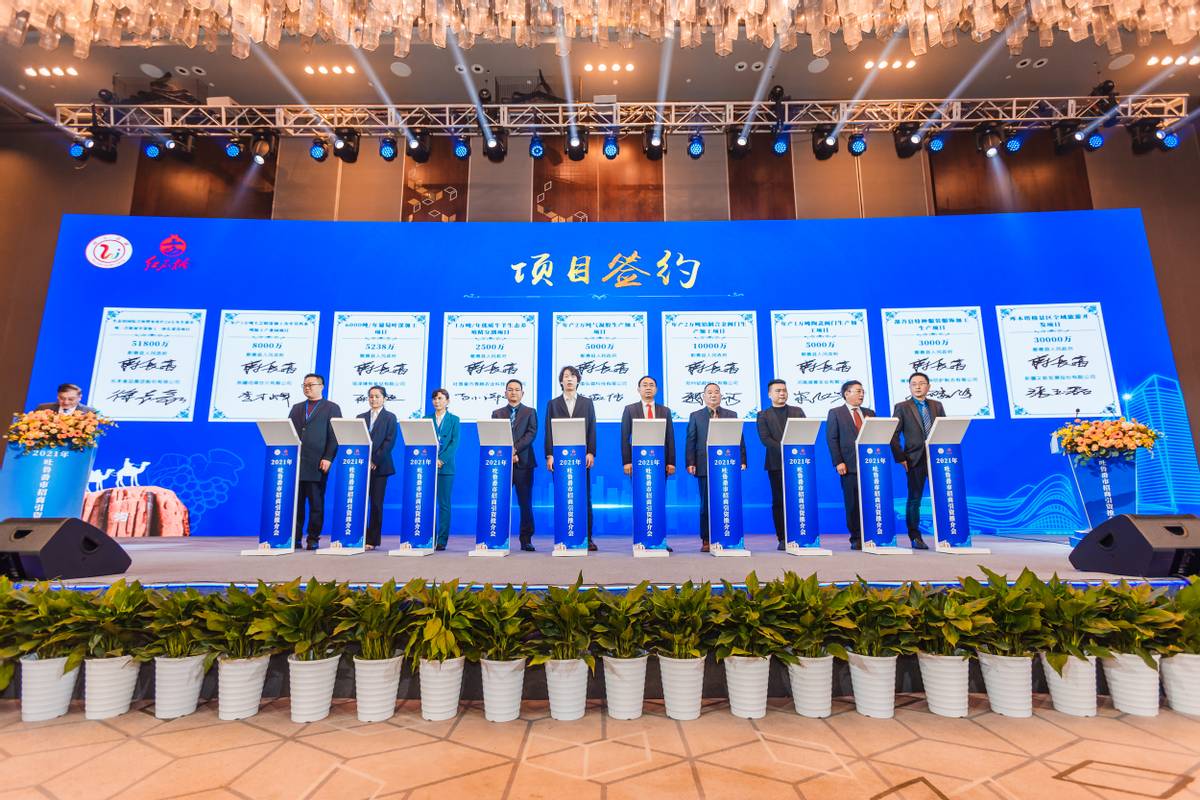 项目签约环节举行了五轮招商引资项目签约,共签订项目33项,签约总额达153亿元。在购销合同签约中,共签订购销合同3项,签约总额3.86亿元,主要为葡萄干、红枣等农副产品的购销。