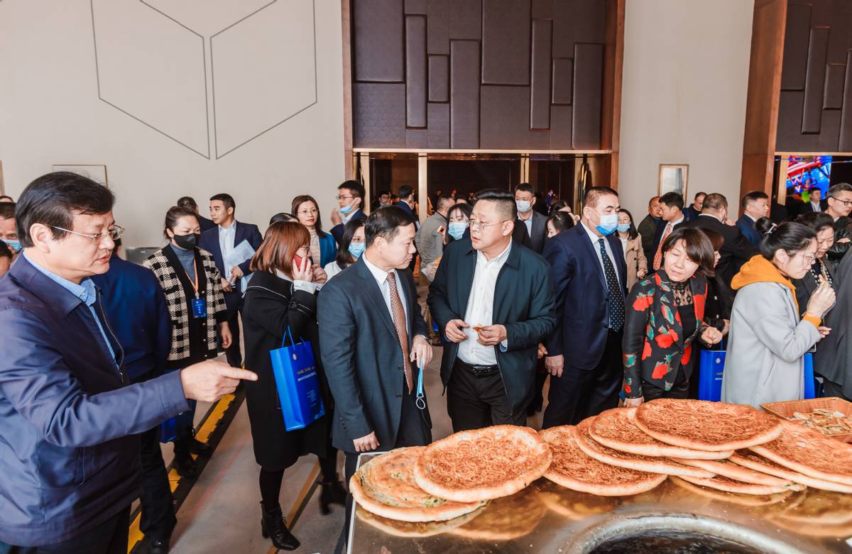 (与会领导和嘉宾在展示区品鉴吐鲁番特色产品)
