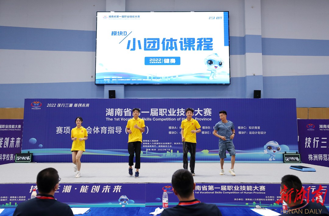 新湖南客户端7月6日讯(记者 杨鸿雁 胡旻 实习生 文湘玥 彭骏捷)想跟着“刘畊宏”一起运动健身?7月5日,是湖南省第一届职业技能大赛最后一天的比赛日,记者们搭上赛事“末班车”,探访社会体育指导员项目竞技赛场,感受在赛场上的“刘畊宏”教你科学健身之道。