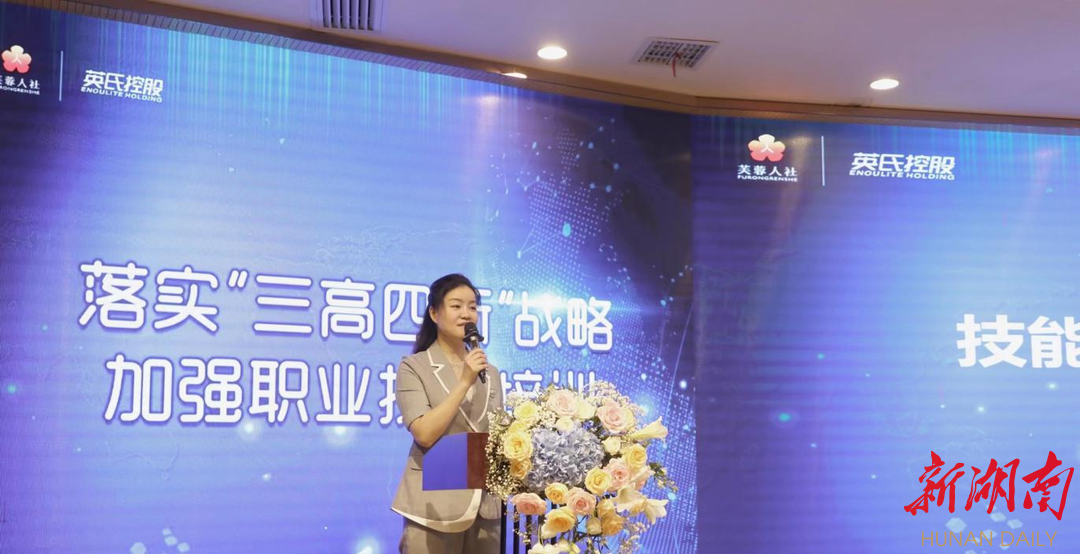 活动现场,长沙市人社局职建处处长刘晟为英氏控股集团授牌,设立企业职工培训中心,并开设芙蓉区首个“三高四新”战略重点职业(工种)技能培训班。
