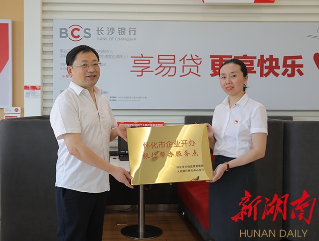 湖南日报·新湖南客户端7月13日讯(通讯员 梁君秋)7月11日至12日,怀化市市场监督管理局与人民银行怀化中心支行一起,分别为怀化农村商业银行股份有限公司金岸支行、长沙银行股份有限公司怀化火车站支行设立“企业开办 银行帮办服务点”进行授牌,试点推行银行帮办代办企业注册登记业务。