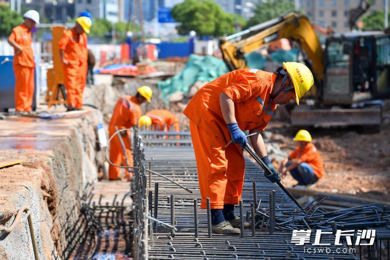 8月20日,在长沙汽车南站综合交通枢纽西广场,地铁7号线汽车南站的施工现场,60多名工人头顶烈日进行冠梁支撑浇筑,为车站主体基坑全面开挖做准备。记者20日从长沙轨道集团获悉,长沙地铁7号线一期工程(云塘站—五里牌站)全线16座车站目前已全部实现开工建设,为后续掀起主体施工大干热潮打下坚实基础。