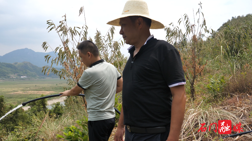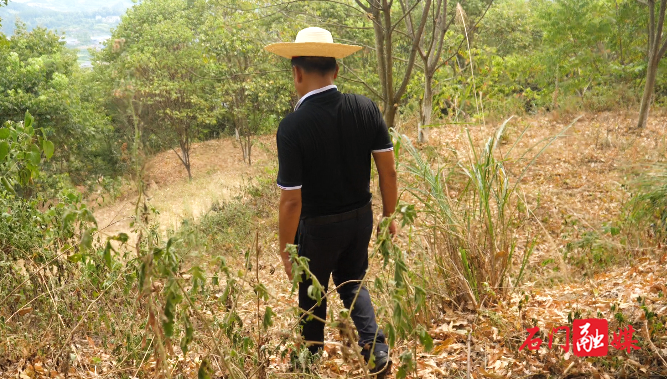 在磨市镇横铺村板栗林,覃海波正在给板栗施水浇灌。由于林地附近没有电源,覃海波购买了发电设备和抽水设备,盛孝前也多次前来对板栗保苗工作进行指导,尽最大努力让种植户的损失降到最低。此次主要是查看苗木保湿情况。“我总共有3000多亩板栗山林,通过盛站长的科学指导,先给树兜底下覆盖杂草,然后再施水,这样给树保湿的时间就比较长,最少能保湿3-5天。”湖南永汇农林科技有限公司董事长覃海波说道。