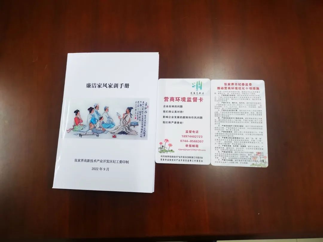 发放《营商环境监督卡》,是张家界高新区创建清廉园区的一个有力抓手。今年来,高新区积极推进“清廉园区”建设,着力构建亲清政商关系,推动园区经济全面发展。