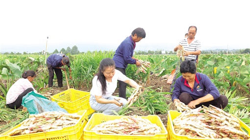 上江圩镇吴家村,村民在采挖香姜。