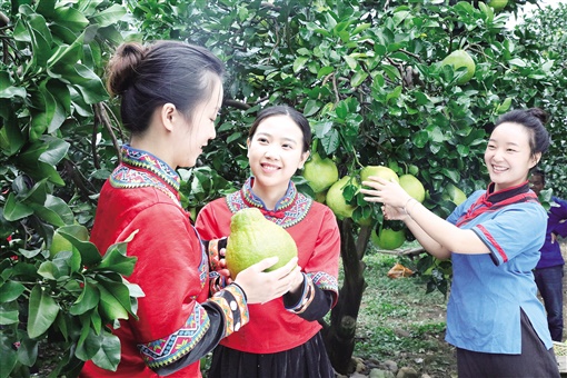 粗石江镇香柚产业园,果农在采摘香柚。