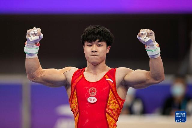 (杨家兴获得2022年全国体操锦标赛男子个人全能季军。图为2022年9月6日,杨家兴在吊环比赛后庆祝。新华社记者 许雅楠/摄)