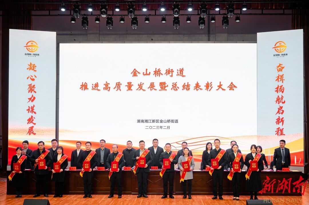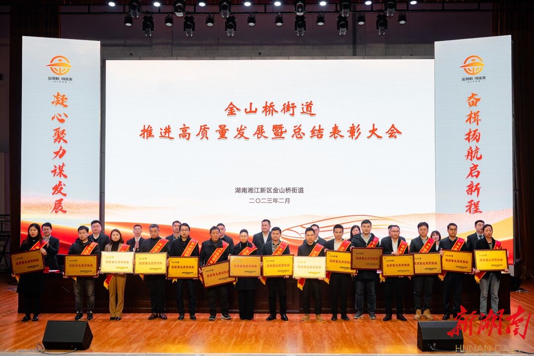 湖南日报•新湖南客户端2月12日讯(通讯员 蔡瑶)凝心聚力谋发展,奋楫扬航启新程。今天,湖南湘江新区金山桥街道召开推进高质量发展暨2022年度总结表彰大会,总结经验、表彰先进、坚定信心,动员街道上下提振精神、团结奋进,奋力谱写金山桥街道高质量发展新篇章。街道全体党政班子成员、机关干部、社区干部、各基层党组织书记、党小组长、网格员,驻街企事业单位、重点项目、物业公司负责人,以及其他获奖单位和个人共计400余人参加。
