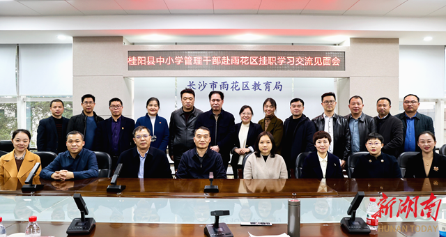 2月21日下午,桂阳县中小学管理干部赴雨花区挂职学习见面交流会在雨花区教育局召开。据了解,桂阳县此次挂职培训派出的8名校长既有来自高中,也有初中、小学,他们来到挂职学校后立即沉下心来认真学习,做到身到位、心到位、学到位,积极参与重要的决策、参与重点的工作、参与重大的活动。