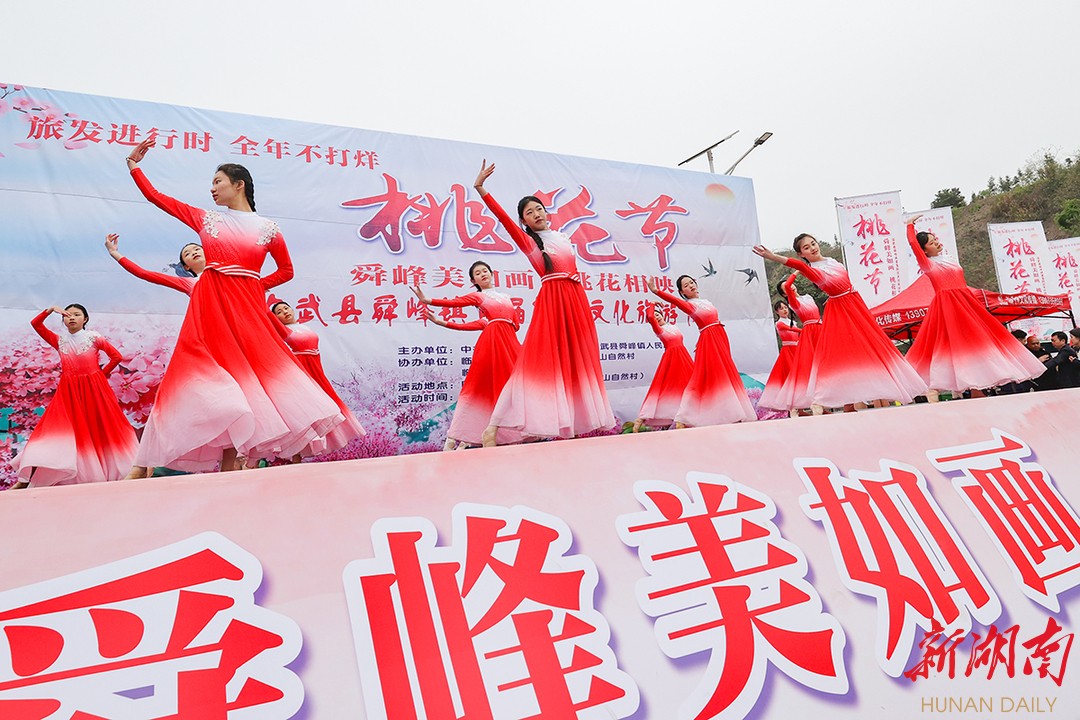湖南日报·新湖南客户端3月19日讯(通讯员 陈卫平)3月18日,临武县舜峰镇在黄皮山自然村举办首届桃花文化旅游节,现场文艺展演、一村一品展示,美食一条街特色小吃等,吸引上万名游客前来赏花、购物。