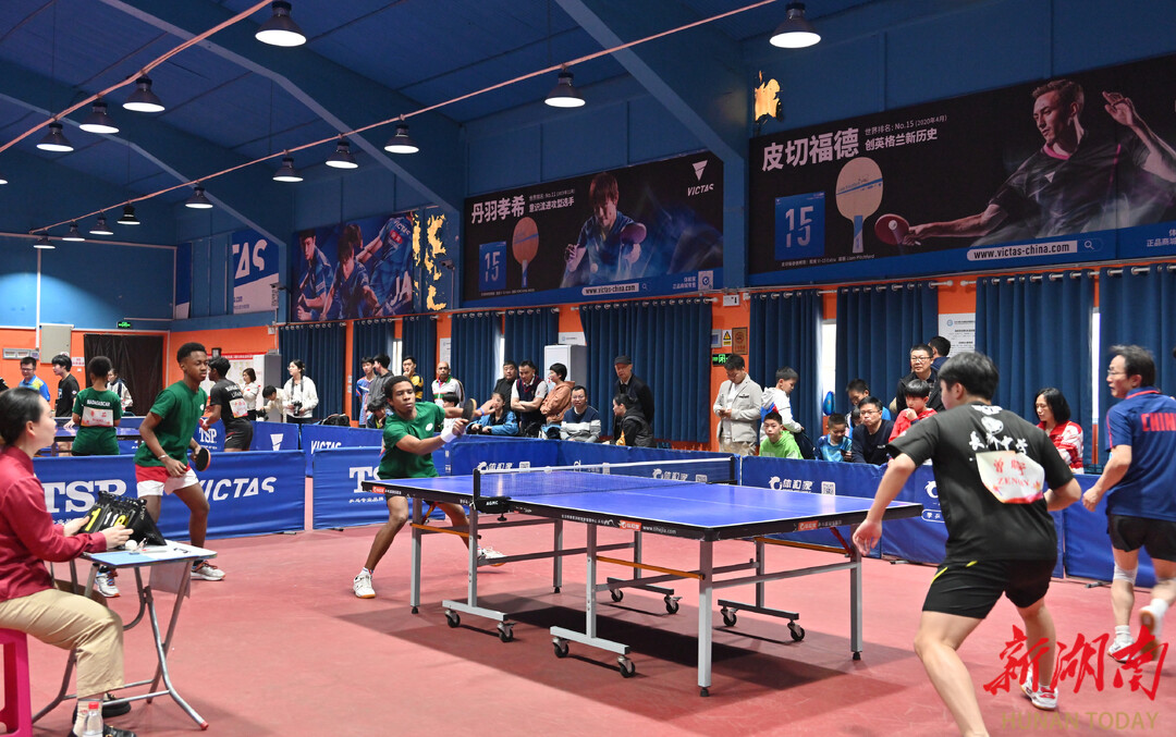 此外,比赛吸引了长沙市竞赛管理中心乒乓球训练基地的队员现场观赛,队员们热情高涨,其中,易子琪和李鑫骋还向活动主办方提出球技交流的心愿。在获得许可后,马达加斯加运动员与2名乒乓球小将进行了一局的球技切磋。