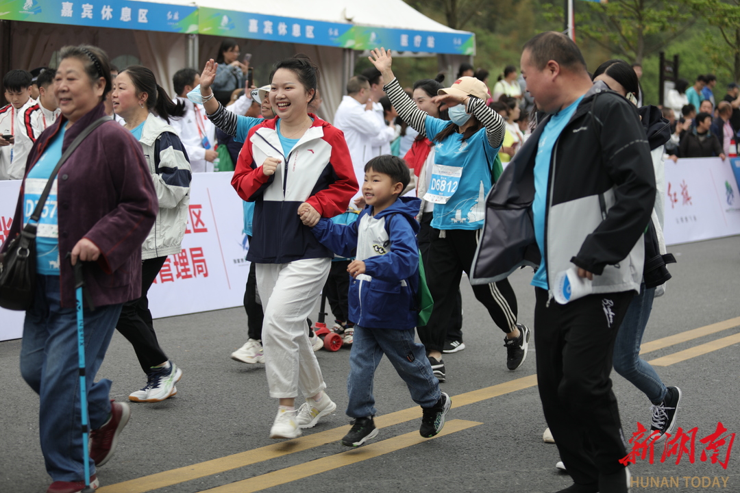 奋力奔跑的选手中,既有来自全国各地的跑友,还吸引了来自肯尼亚、马达加斯加等国家或地区的跑友,以及阳光特跑团的心智障碍跑者,身穿比赛服的武陵源区委书记张龚也是本次赛事参赛选手之一。