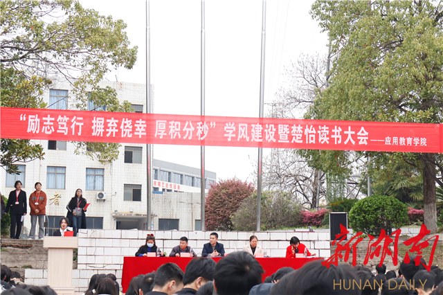 湖南日报·新湖南客户端4月2日讯(通讯员 邹灿)为推动学风建设,提高人才培养质量,传承楚怡职教精神,营造爱读书、读好书、善读书的浓厚氛围,3月27日下午,娄底潇湘职业学院应用教育学院在老篮球场举行 “学风建设暨楚怡读书活动启动大会”。该校应用教育学院院长张天杰、党支部书记刘香彩、学生工作处处长万玲红等领导以及全校中专学生900多人参加。