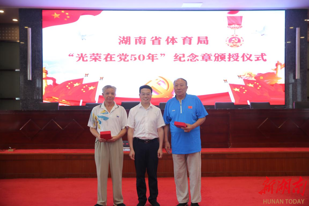 新湖南客户端7月4日讯(通讯员 覃粤红)为庆祝建党102周年,全面贯彻落实党的二十大精神,强化党建引领,6月30日下午,湖南省体育局举办了“学思想 强党性 共奋斗”党建知识竞赛暨“光荣在党50年”纪念章颁发活动。省体育局党组成员、副局长罗跃龙出席活动并讲话,驻局纪检监察组组长、局党组成员姚震出席活动并为老党员颁发纪念奖章。