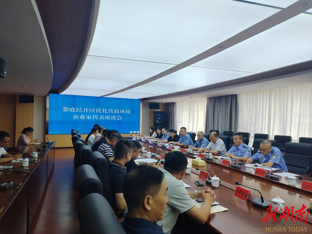 湖南日报·新湖南客户端9月1日讯(通讯员 王榕)娄底交警树立“靠前一步,主动作为”工作理念,以服务企业为重点,以营造良好营商环境为方向,8月31日上午,娄底经开区纪工委、娄底市公安局交警支队与园区企业座谈会在娄底电力科技谷召开。15家企业家代表参加了政警企恳谈会。